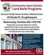 Join the Dutchess County-Poughkeepsie Land Bank for a community outreach session, where members of the public are encouraged to attend to learn more about the land bank’s recent property acquisition of 60 Lincoln Avenue and provide input on how DCPLB can help address the affordable housing crisis in Dutchess County.